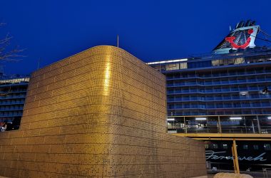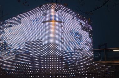 “Due to its extraordinary location – at the interface between the city centre and the promenade along the fjord – the requirements regarding urban planning and architecture have been really high right from the start. The positioning of the building and the formulation of its cubature in combination with the façade’s design achieve to set a clear architectural accent in that place”, said City Councillor Doris Grondke. Due to the different illumination options, the façade is a constantly changing highlight which will always remain interesting. The actual innovation also lies in the concealment and the surprise. The architect Jan Schulz of BSP Architekten BDA said: “This façade is so far unique in its kind. In daylight, the outer shell shows its very own character with its dynamically structured perforation. Once the LED lights hidden in the façade are switched on there is a totally new level of design that completely transforms the perception in the dark.” Almost half of the 720 m2 large metal wall has been covered with more than 12,000 LEDs of which every single one can be managed individually using special software. When all LEDs are in full operation, the wall consumes nearly 25 kWh of eco-power. Lighting Designer Hauke Giesecke at the team licht company said: “There are virtually no lim-its to the diversity and creativity of the display. It was an important aspect that the presented content takes a creative approach playing with the building’s impression. The texts and imag-es displayed are supposed to be of informative and explanatory nature offering some added value to the beholder.