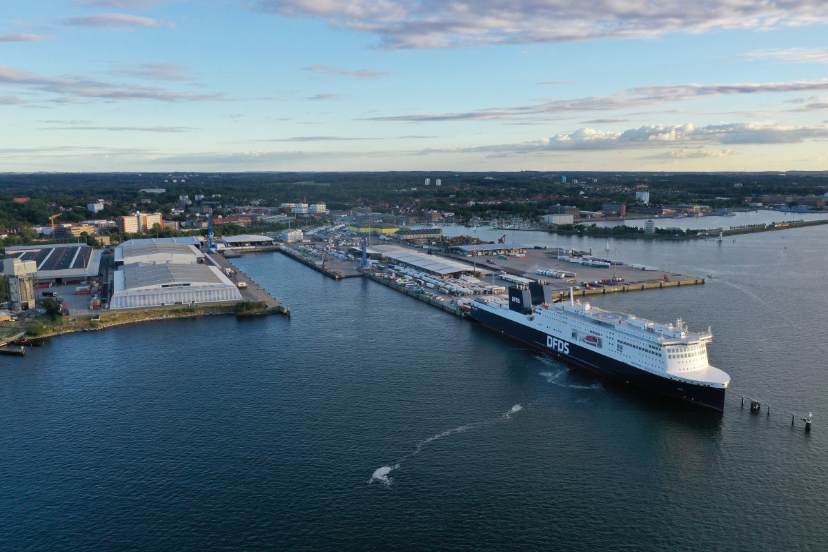 (Kiel, 21st September 2022) It is a special kind of first call: Late on Thursday afternoon, the ferry “Aura Seaways” operated by the Danish shipping company DFDS called at the PORT OF KIEL. It was the first time that a ship from the new generation of ferries berthed at the specifically optimised berths 5 and 6 at Ostuferhafen. Both the use of the new ramp and the subsequent loading and unloading went smoothly and could be completed in less than four hours. “Even if this week is just about the first three test runs, it is also the successful start of a new era in ferry traffic between Kiel – Klaipeda with DFDS as long-standing partner at our side”, emphasizes Dr Dirk Claus, Managing Director of SEEHAFEN KIEL GmbH & Co. KG. In the course of the loading and unloading process, the automatic recording of trucks at the berth was successfully tested using a corresponding video gate system. This is part of an extensive digitization measure for the terminal and is supposed to enable a fully automatic status change of the loading and unloading process in the future.