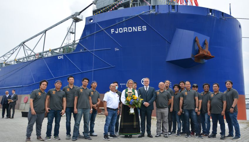 "Fjordnes" in der Kieler Woche am Ostseekai getauft